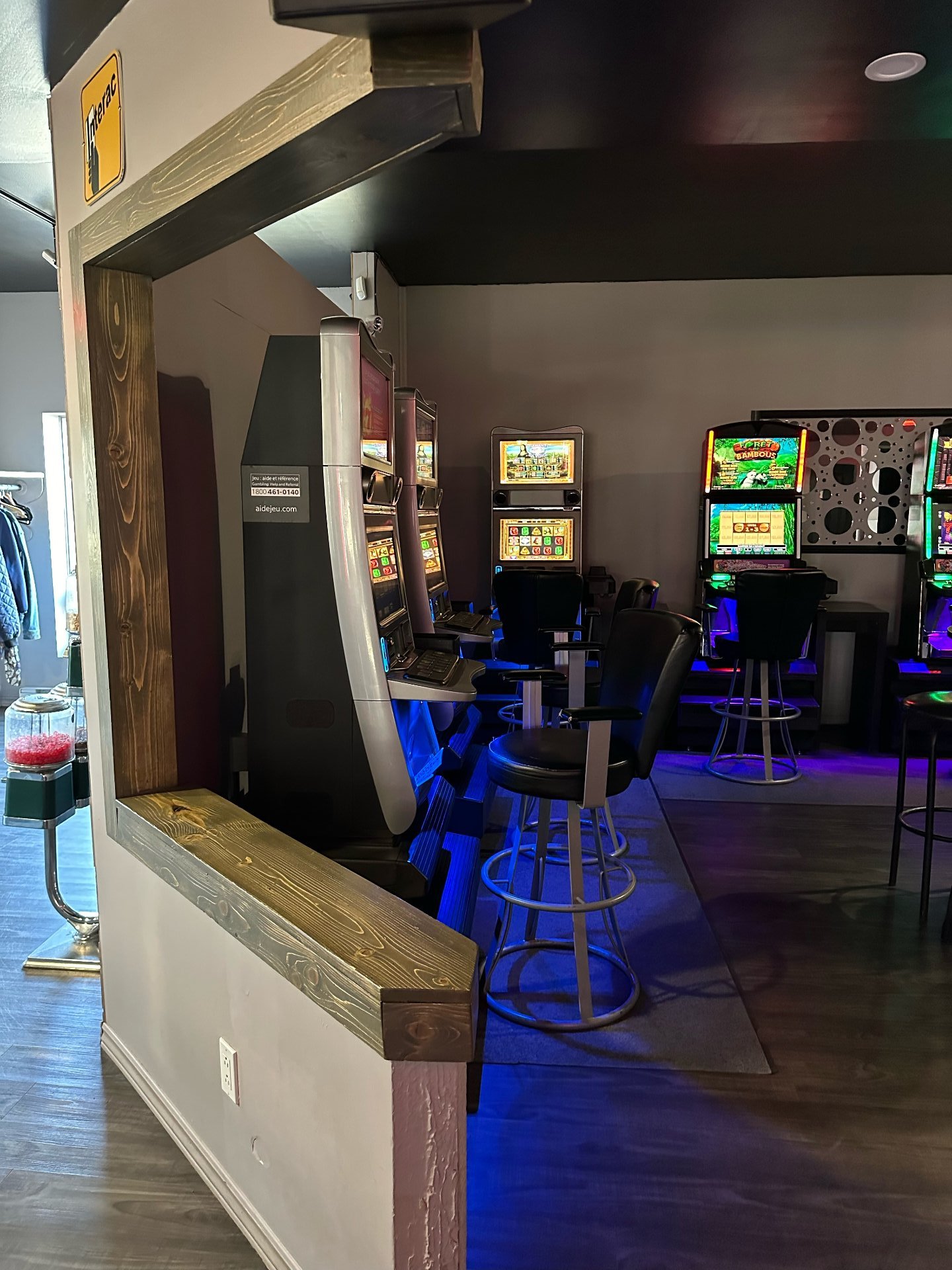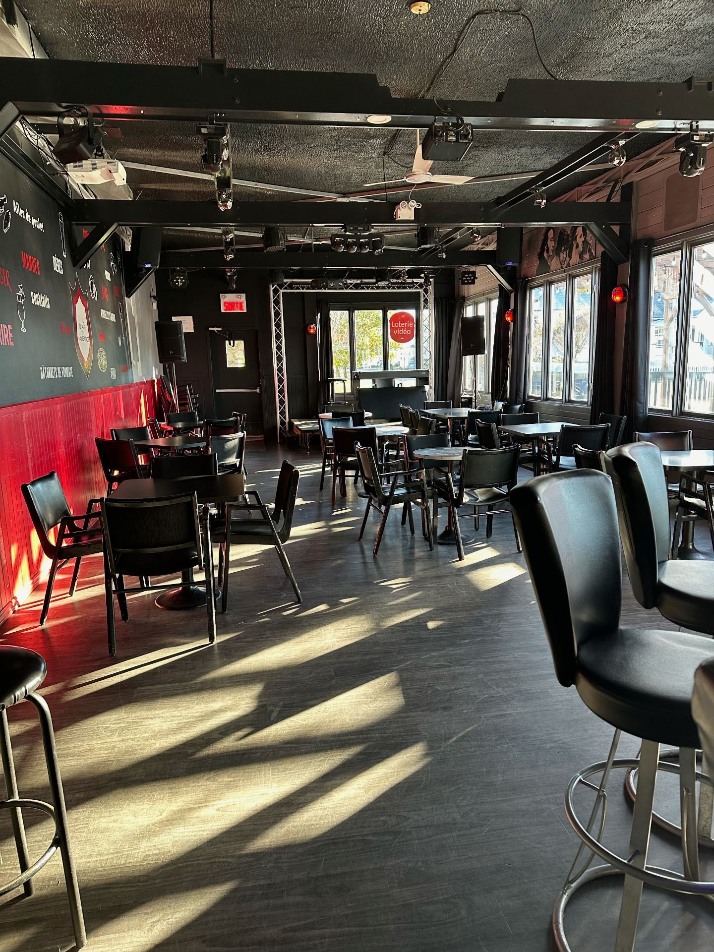 Liste des équipements BAR LA MANSARDE Chambre froide Réfrigérateur à bières Téléviseur 65 pouces Téléviseur 55 pouces Caisse enregistreuse Projecteur avec écran rétractable Système complet de lumières LED au plafond Système de robot projecteur avec logiciel et ordinateur Système de son complet neuf avec 4 caisses de son de 2500 Watts du côté de la salle et deux de 200 Watts du côté du bar Machine à glace Scène pour chansonniers Four Masterchef (Pression, convection, micro-ondes) Macchine à Poker qui appartiennent à Loto Québec Lave-Vaisselle de marque Lambert Table de Billard -LOUÉ- Guichet automatique neuf Conteuse d'argent