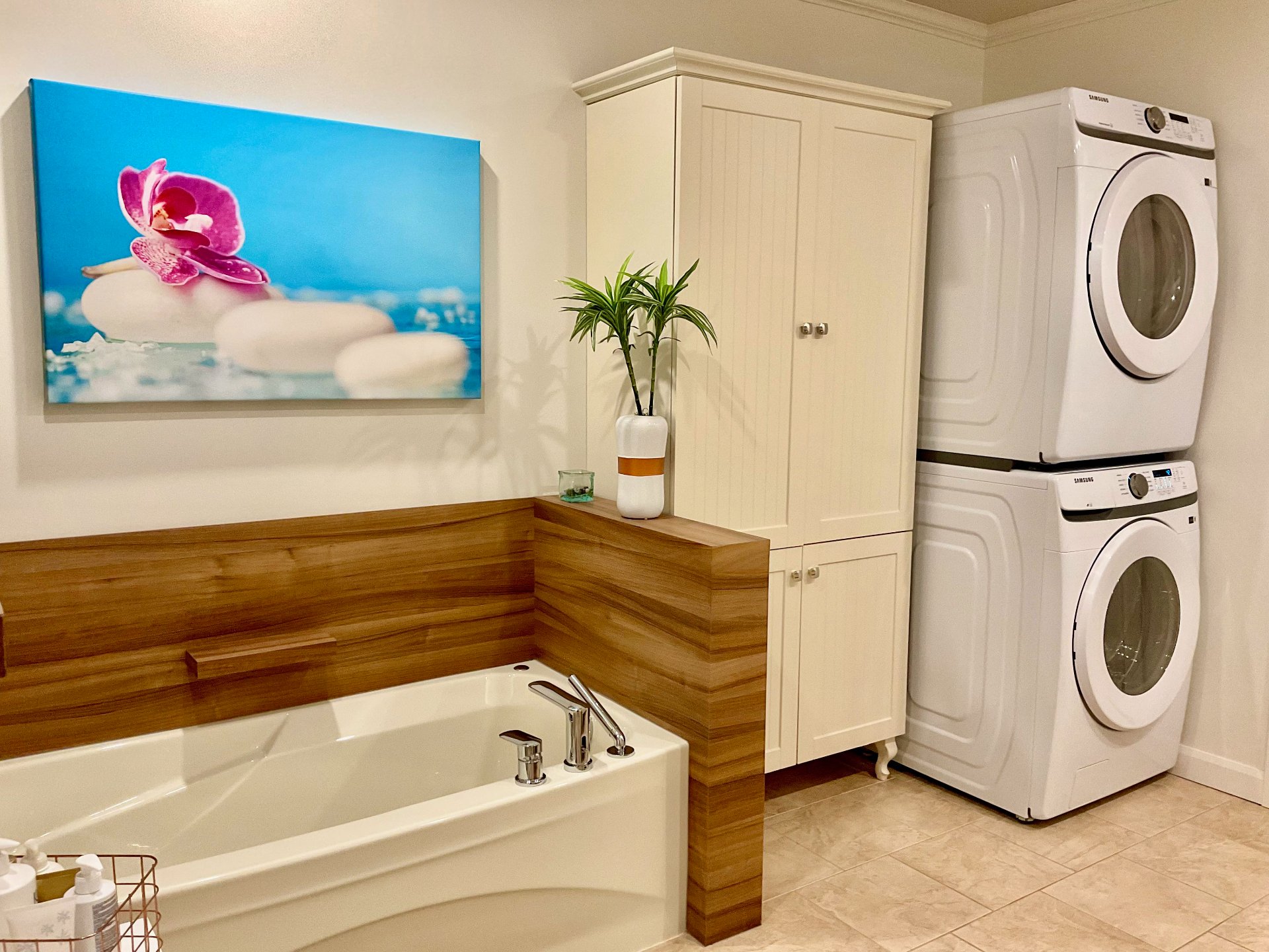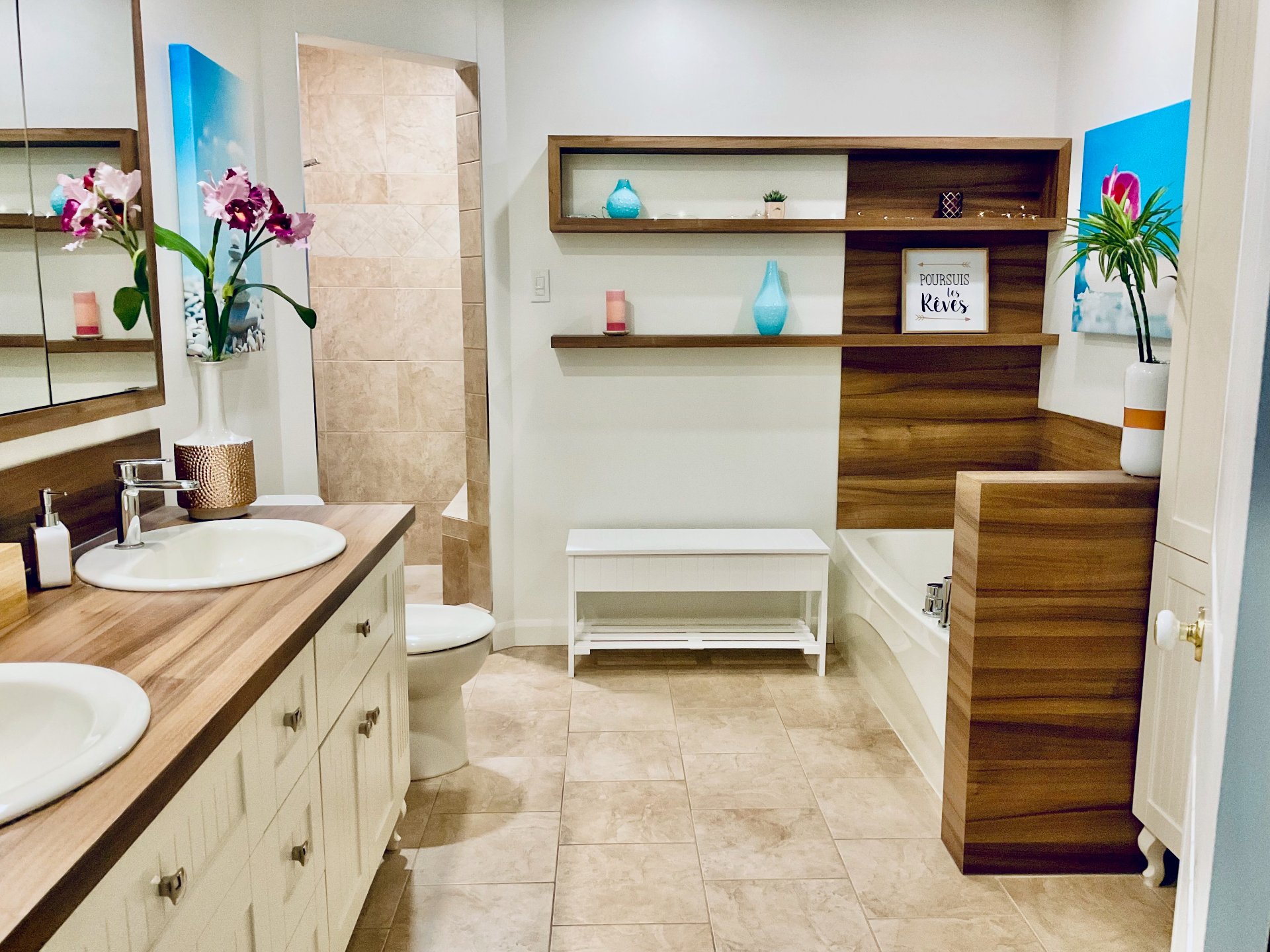 Lave-vaisselle, meuble coiffeuse et miroir
