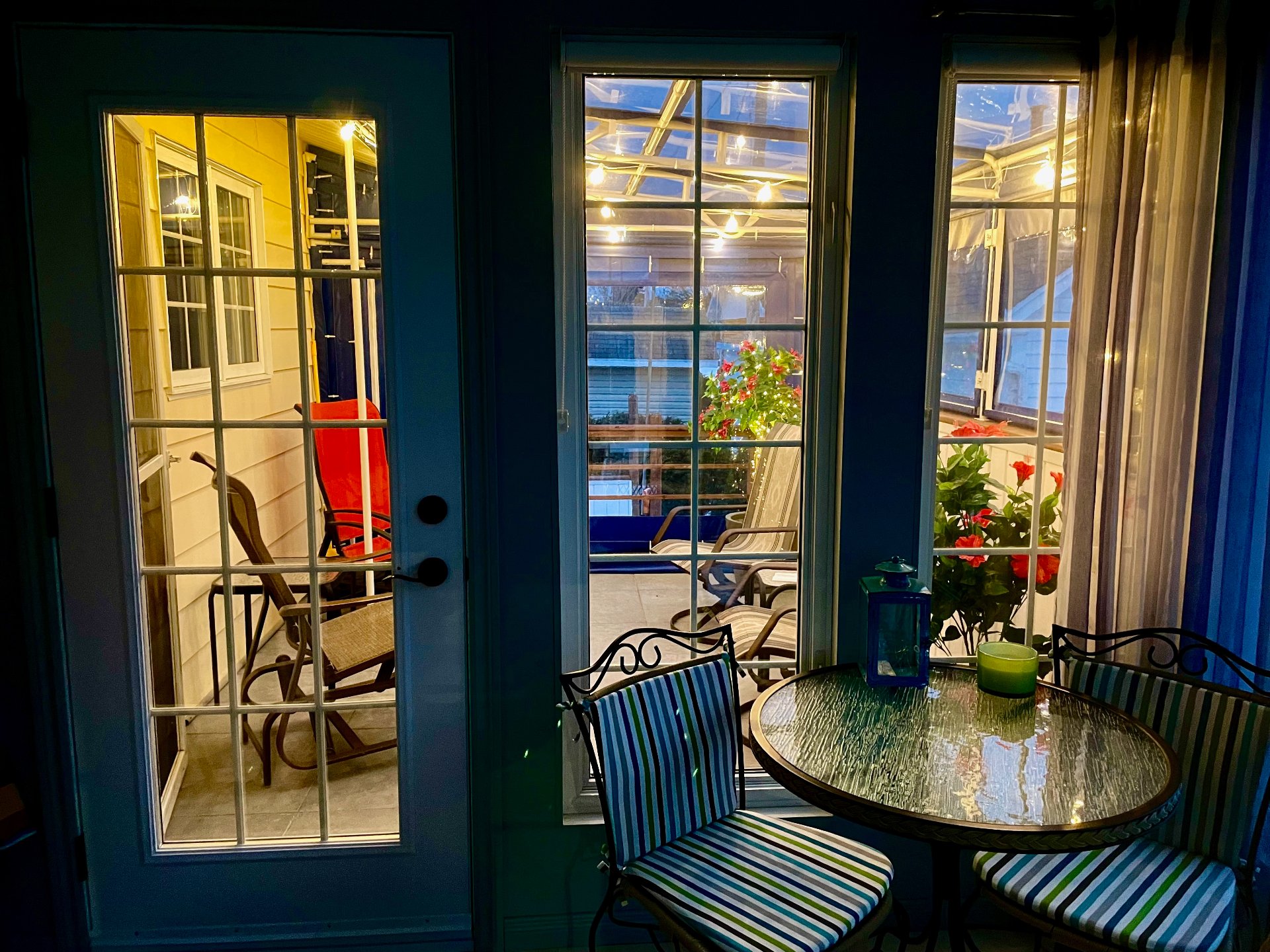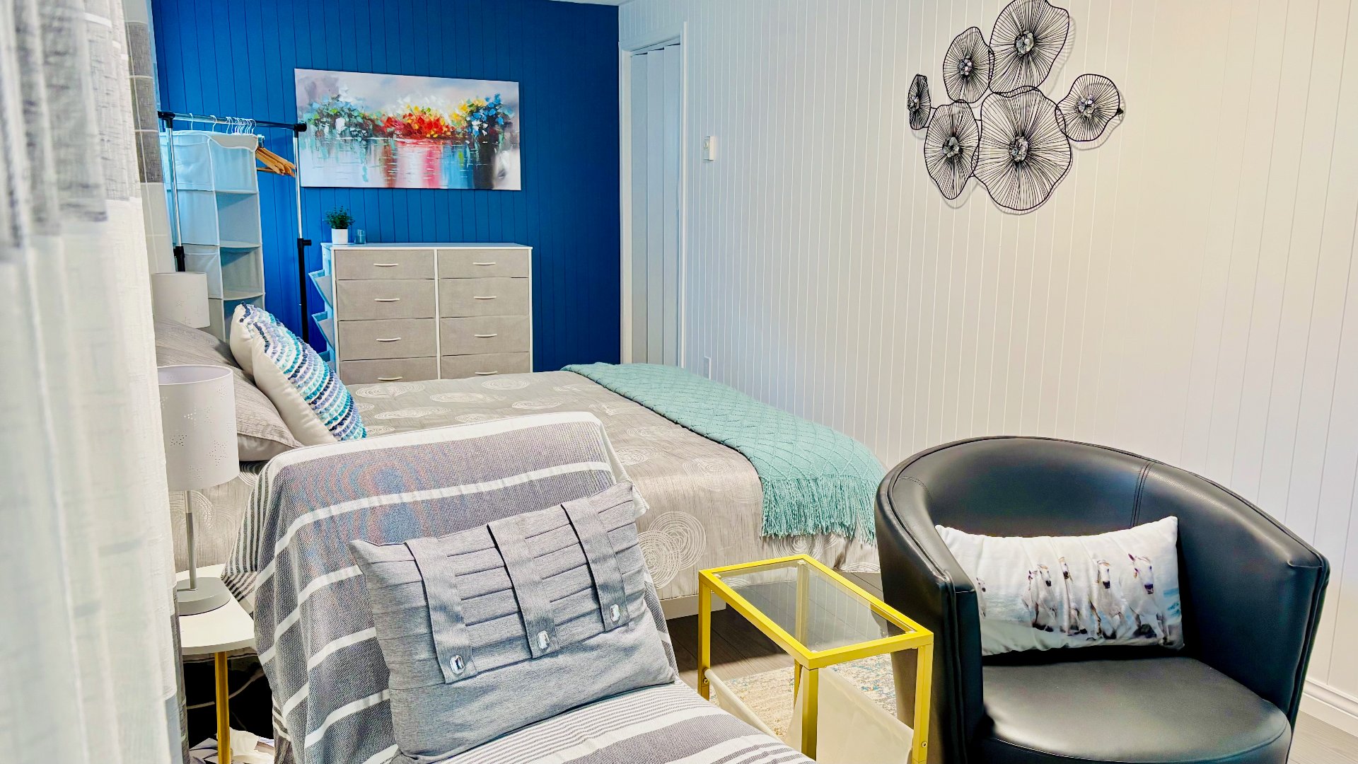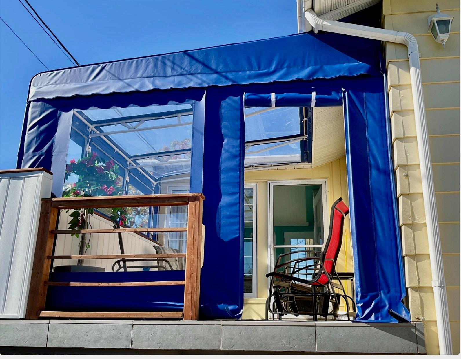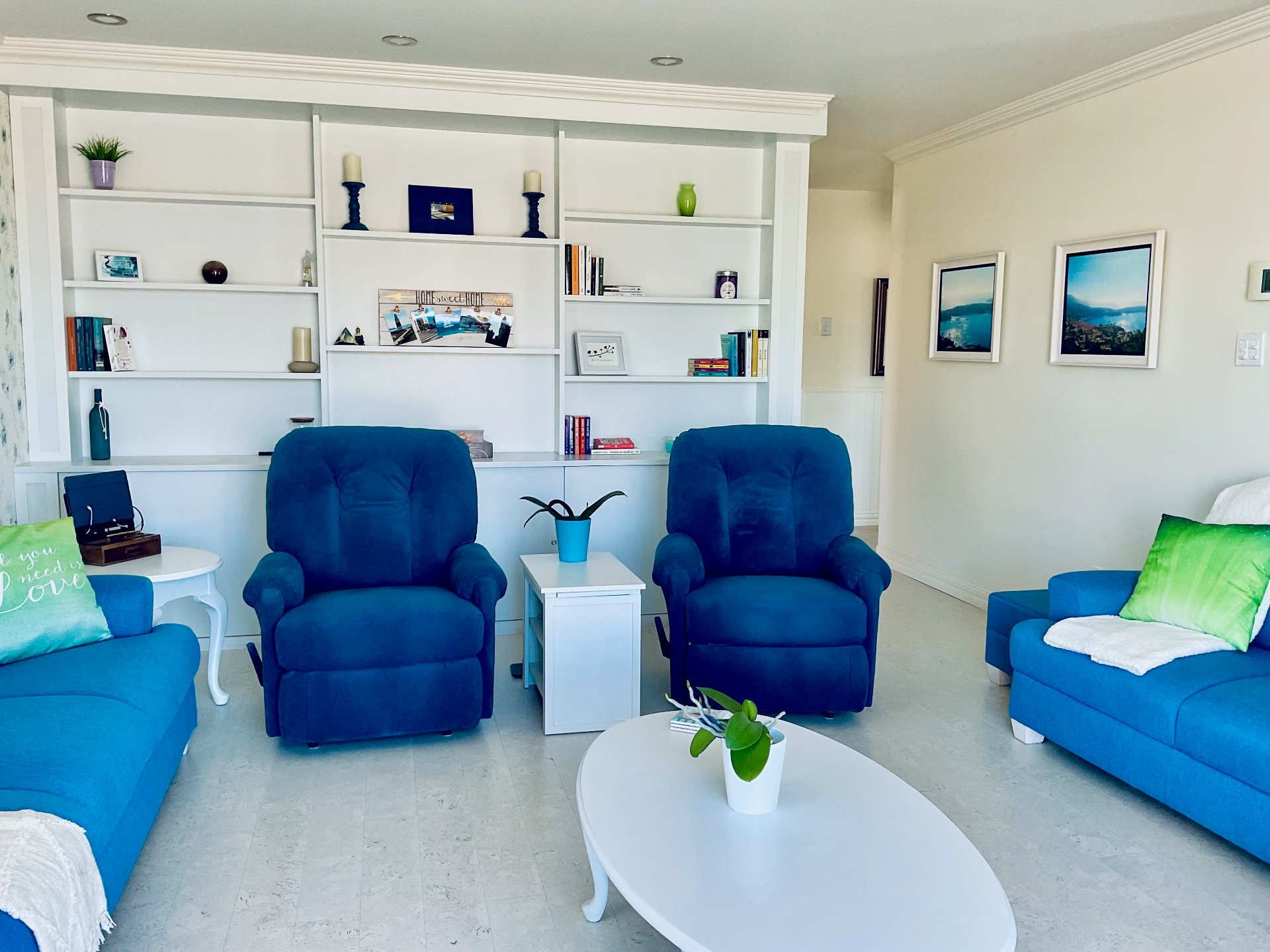 Chambre au sous-sol: stores, tringle à rideaux seulement, télévision.// Solarium: stores et rideaux.// Boudoir ou 3ème chambre: store en bois, étagère, rideaux. // Salle à manger et salon: stores, tringles pour rideaux, foyer électrique.// Chambre principale: store, tringle, télévision 32 pouces fixé au mur.// Cuisine: toile solaire.// Aspirateur central et accessoires.// 2 thermopompes.