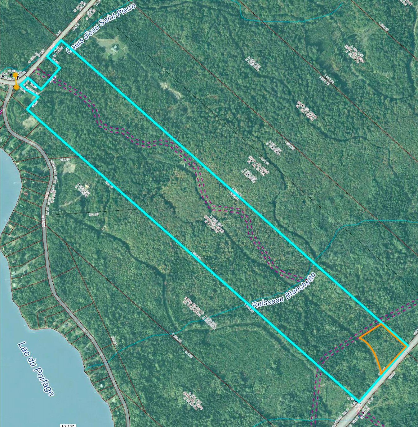 Terrain boisé situé dans la municipalité de Sainte-Paule. Cet emplacement est en zone 4-F; zonage forestier. Le terrain devra être cadastré avant la vente selon la superficie négocier pour une superficie d'environs 150 000 pi2.