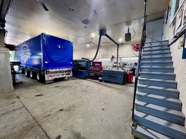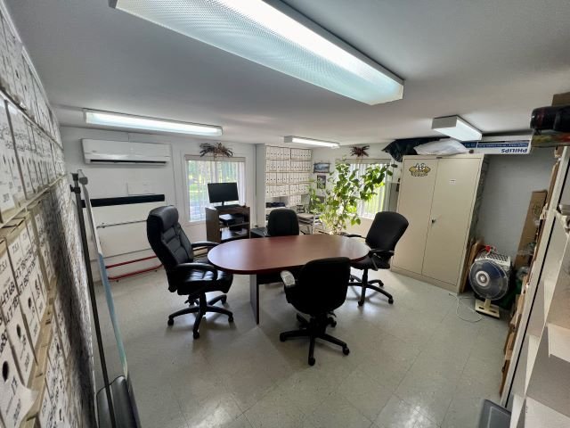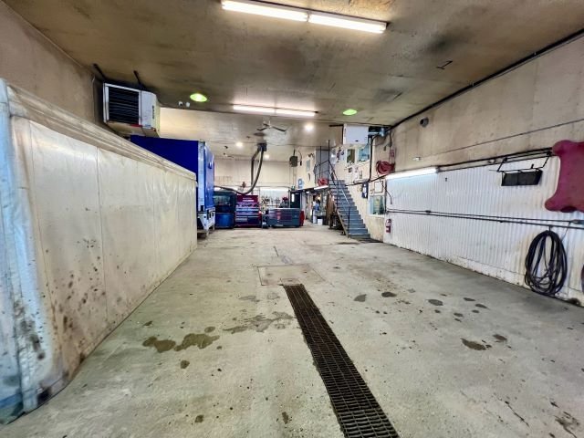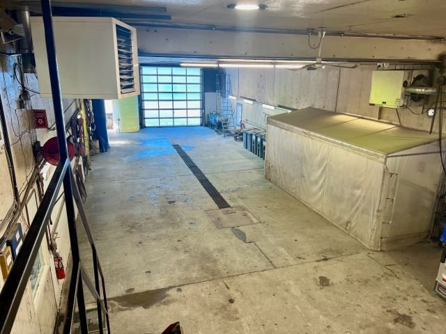 Équipements de garage à déterminer. Compresseur à air et tuyauterie. Meubles de bureau.